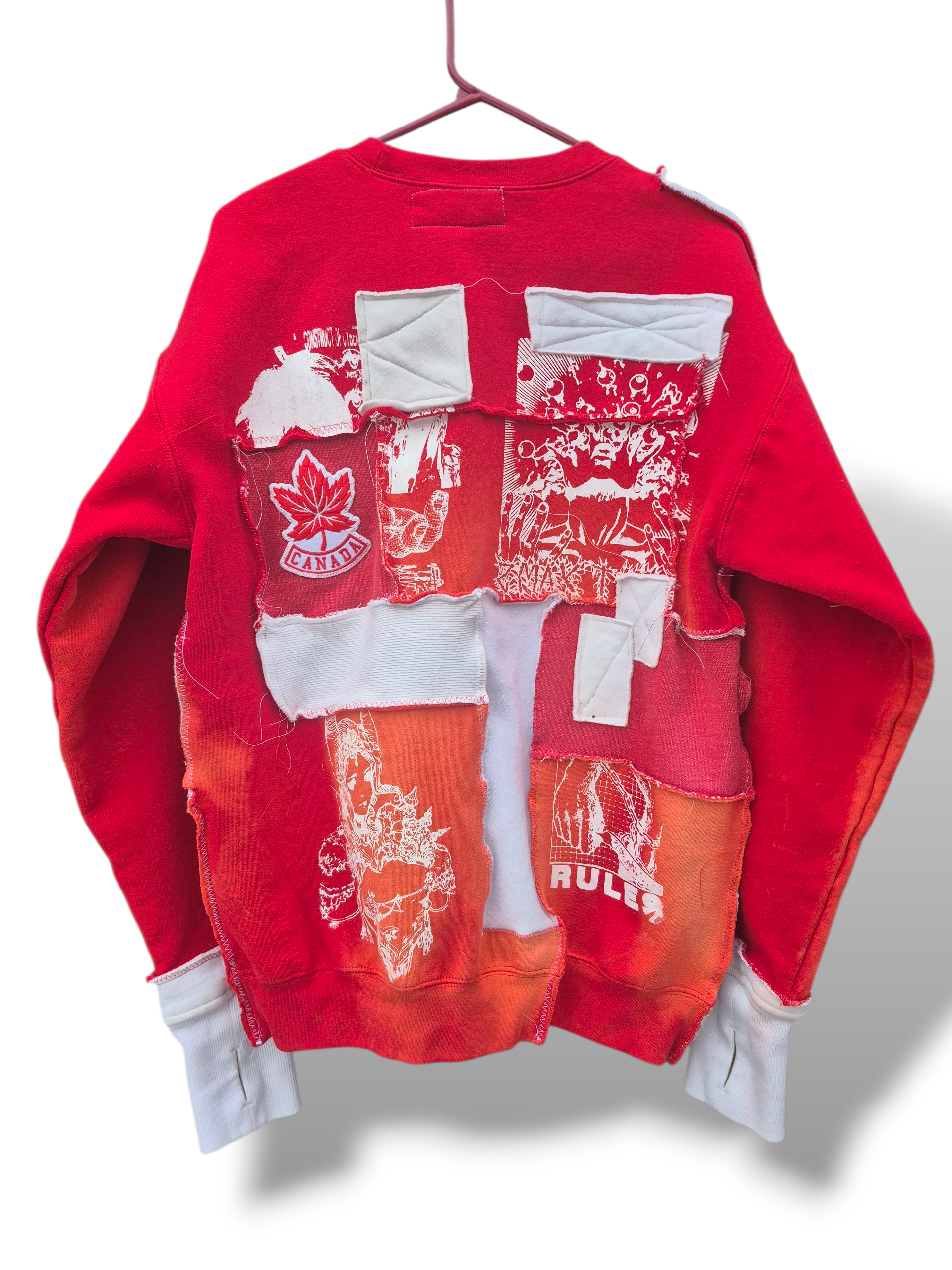 Β Β Β The first verifiable & documented sighting of this piece occured in the far north, a few kilometers north/east of a small locale in the Arctic circle where the people shake and shiver and the water never runs, it simply freezes hard andΒ sharp. It's in this expansive wilderness that this sweater first appeared. Witnesses described itΒ emerging from the earth, glowing red hot & surrounded by scalding steam from heated guisers below. It took nearly 3 full hours to finally cool enough to safely approach and once our team did, we were amazed at what was found. It was indeed a sweater, but one as far from ordinary as I'd ever seen, for it was crafted with the finest materials, including soft fleece cotton and thick French terry, with stark illustrations, each as white as snow, and printed on nearly every surface. There were embroidered patches, and thick chunky ribbing, and even a large, zippered secret pocket for essential belongings. We don't usually sell holy relics on this site but we've made an exception for this one.