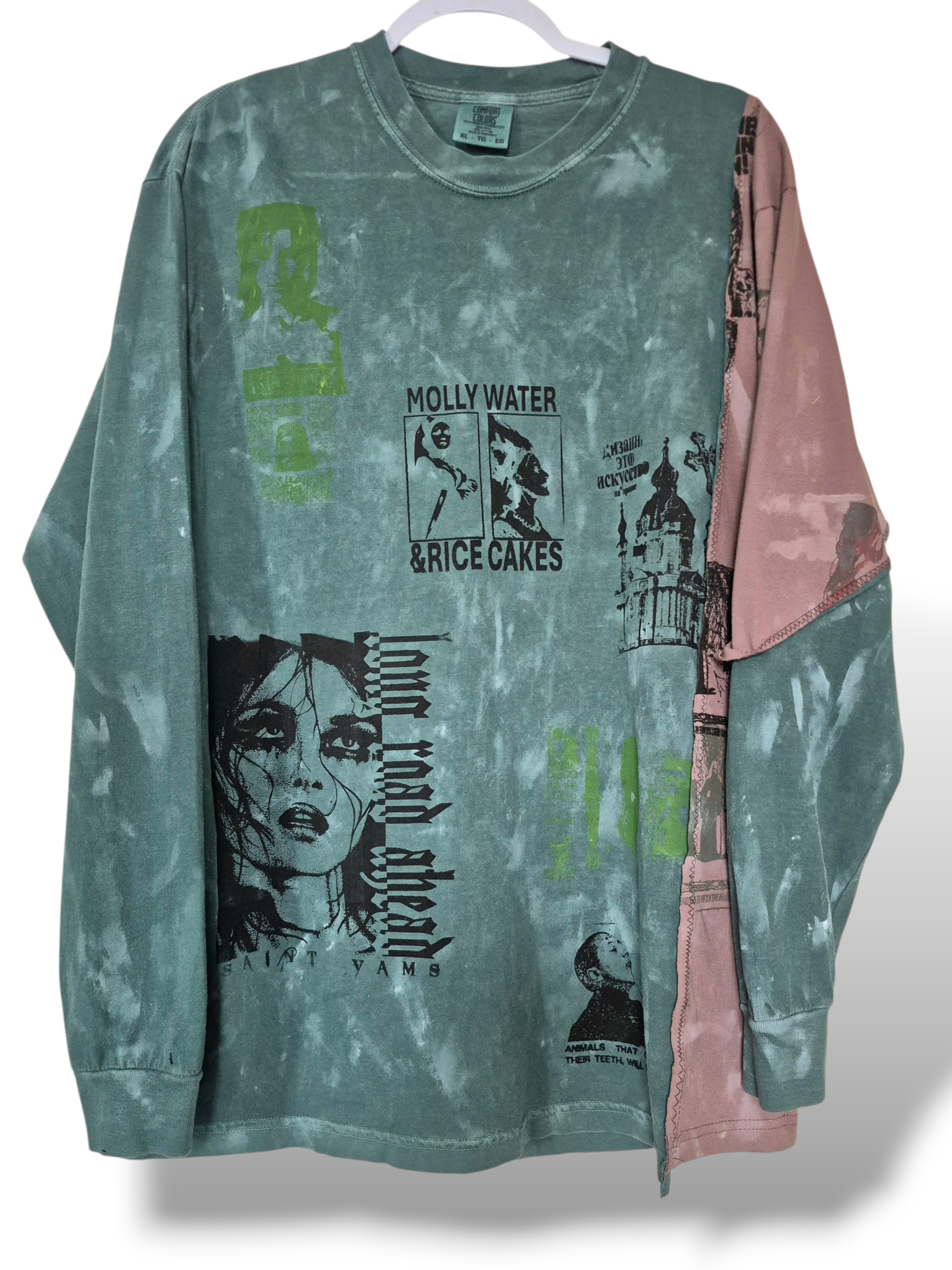 Β Β Β Β Deep teal & muted purple colored shirt with prints on the front, back & sleeves.